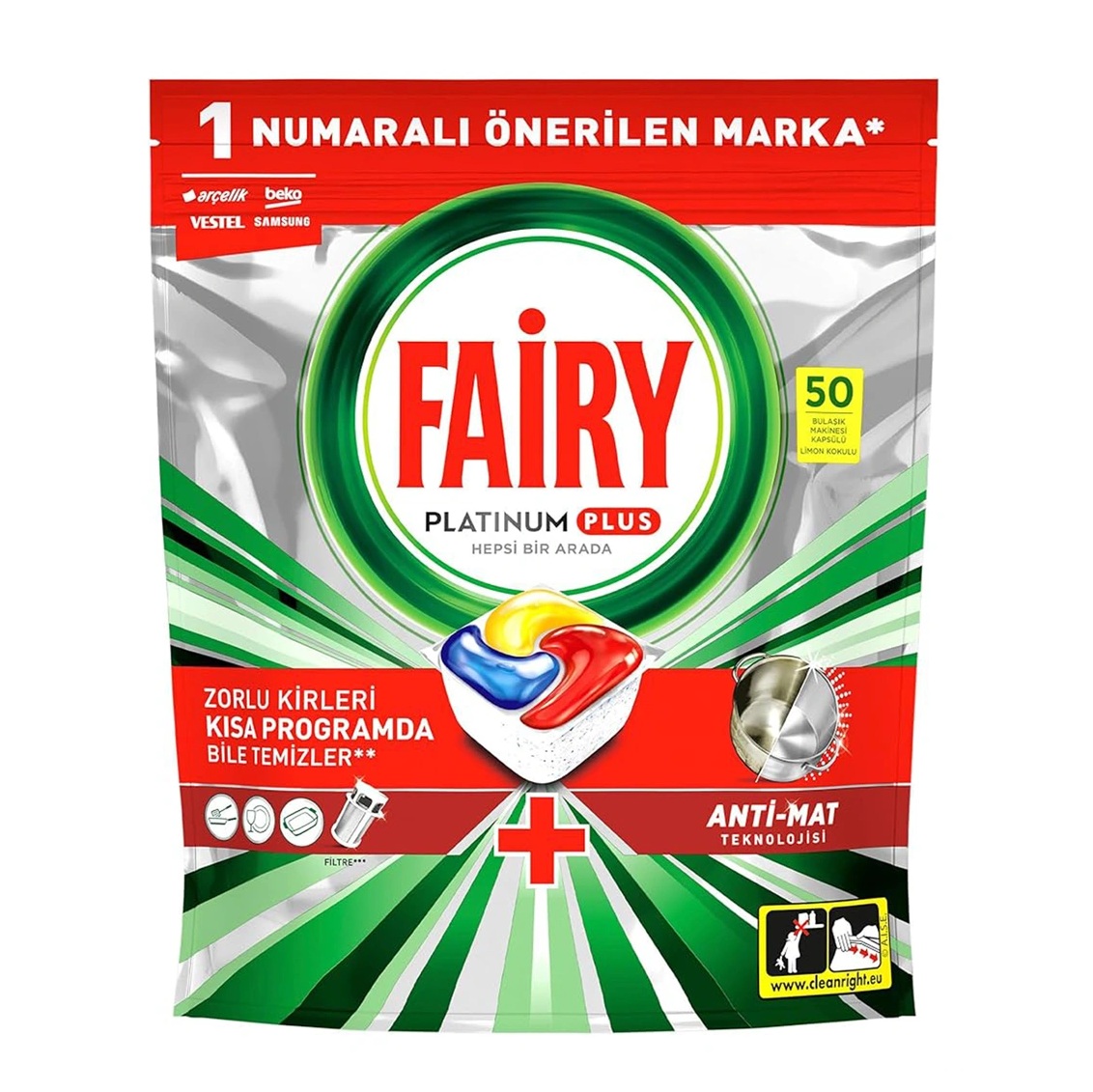 قرص ماشین ظرفشویی فیری مدل Platinum Plus بسته ۵۰ عددی
