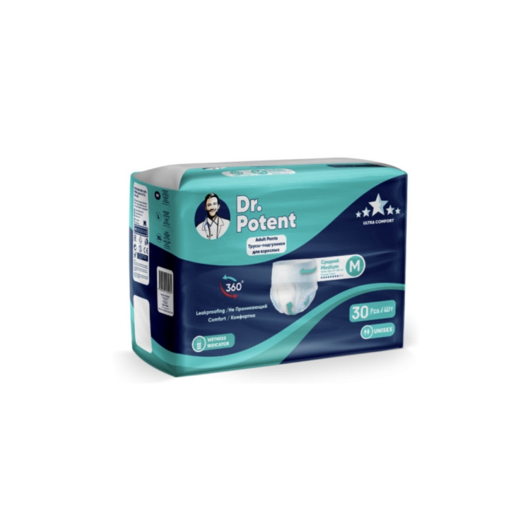 پوشک بزرگسال شورتی دکتر پوتنت Dr Potent سایز متوسط (M) اندازه 70-120 سانتی متر 30 عددی