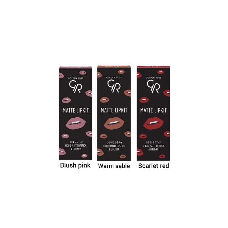 کیت رژ لب مات گلدن رز مدل مات لیپ کیت اورجینال | شامل رژ لب مایع ۵.۵ میل و خط لب ۱.۲ گرم با رنگ هماهنگ